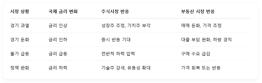 - 자금 이동: 채권 금리가 높아지면 안전자산 선호 증가 → 주식 매도